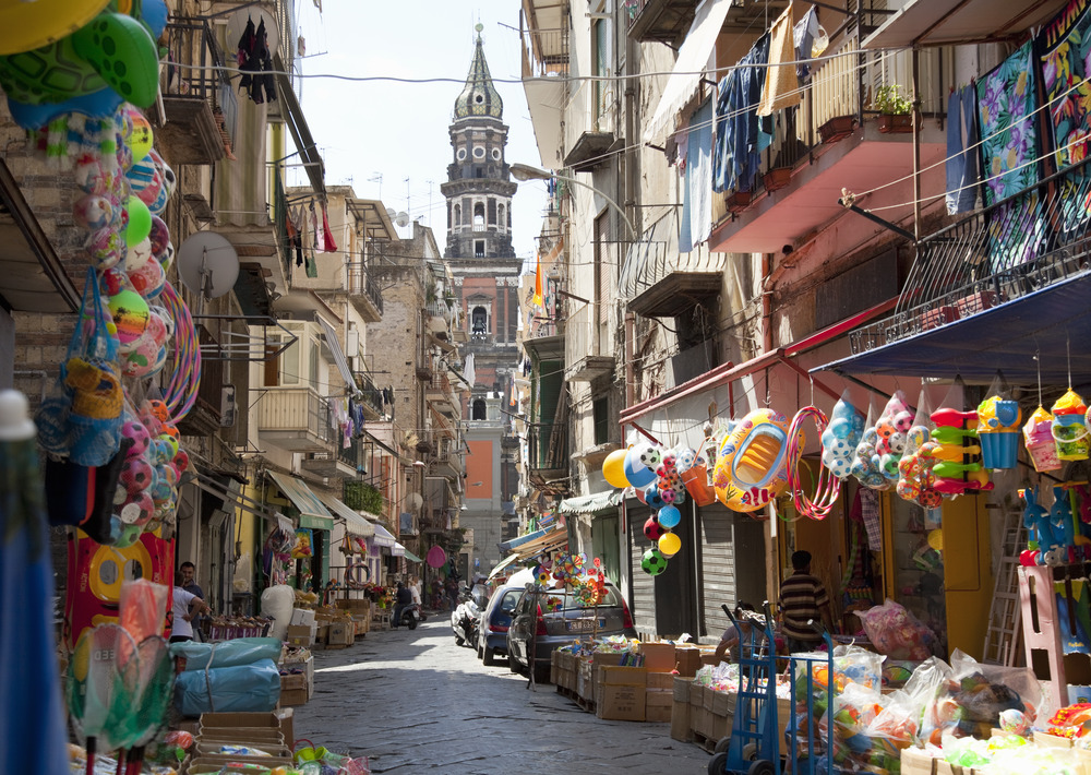 I bakgatene her finner vi bittesmå "hull-i-veggen-bedrifter" som ofte flytter ut i gaten, skopussere, barberere og rare butikker under rader av fargerik klesvask. Veskene som selges her er kanskje ikke helt ekte, men pizzaen er definitivt ekte! Den napoletanske pizzaen er faktisk på UNESCOS verdensarvliste. Den ble til som en dyd av nødvendighet da man ikke alltid hadde råd til kjøtt eller tallerkener. Man skapte derfor en matrett av det man hadde; olivenolje, mozzarella, sardiner og verdens beste tomater!