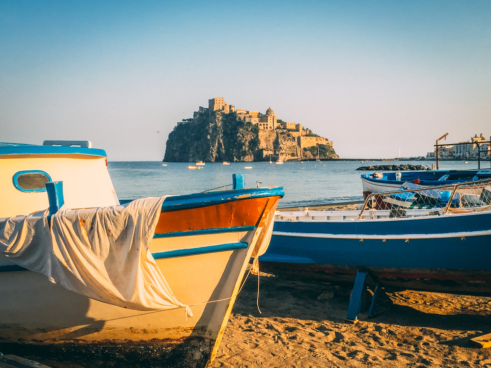På turen hjemover kan vi nyte utsikten mot havnen i Ischia Porto og naboøyene Procida og Vivara.